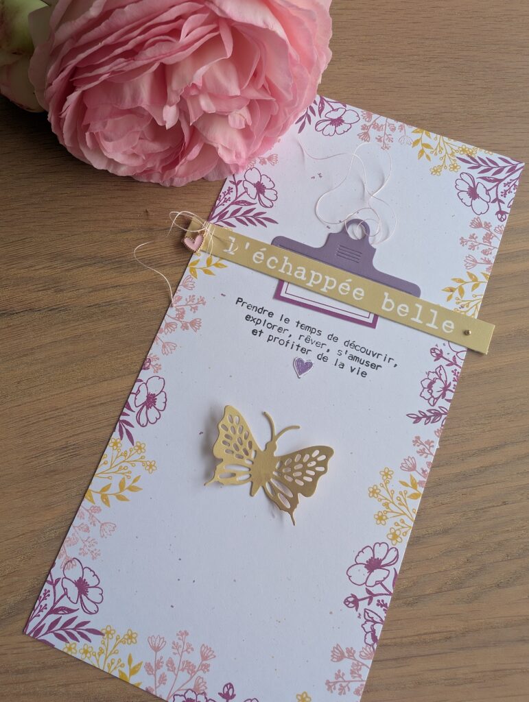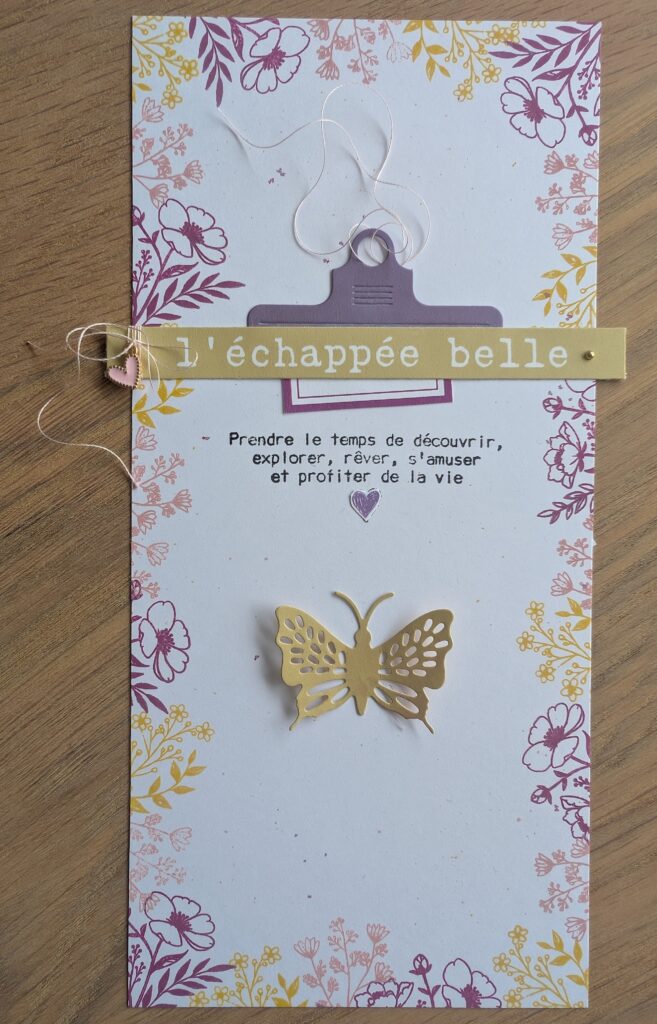 Tout le matériel utilisé provient de la collection « Holi Days » de Les ateliers de Karine : papiers, dies, tampons …